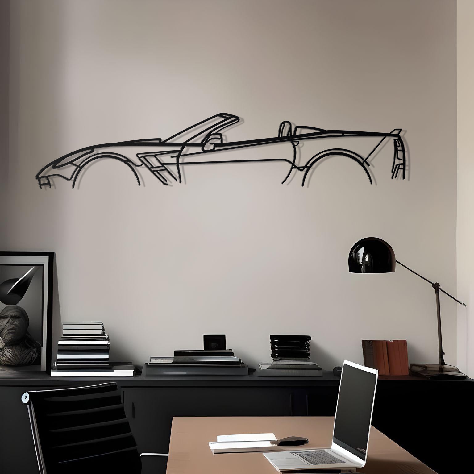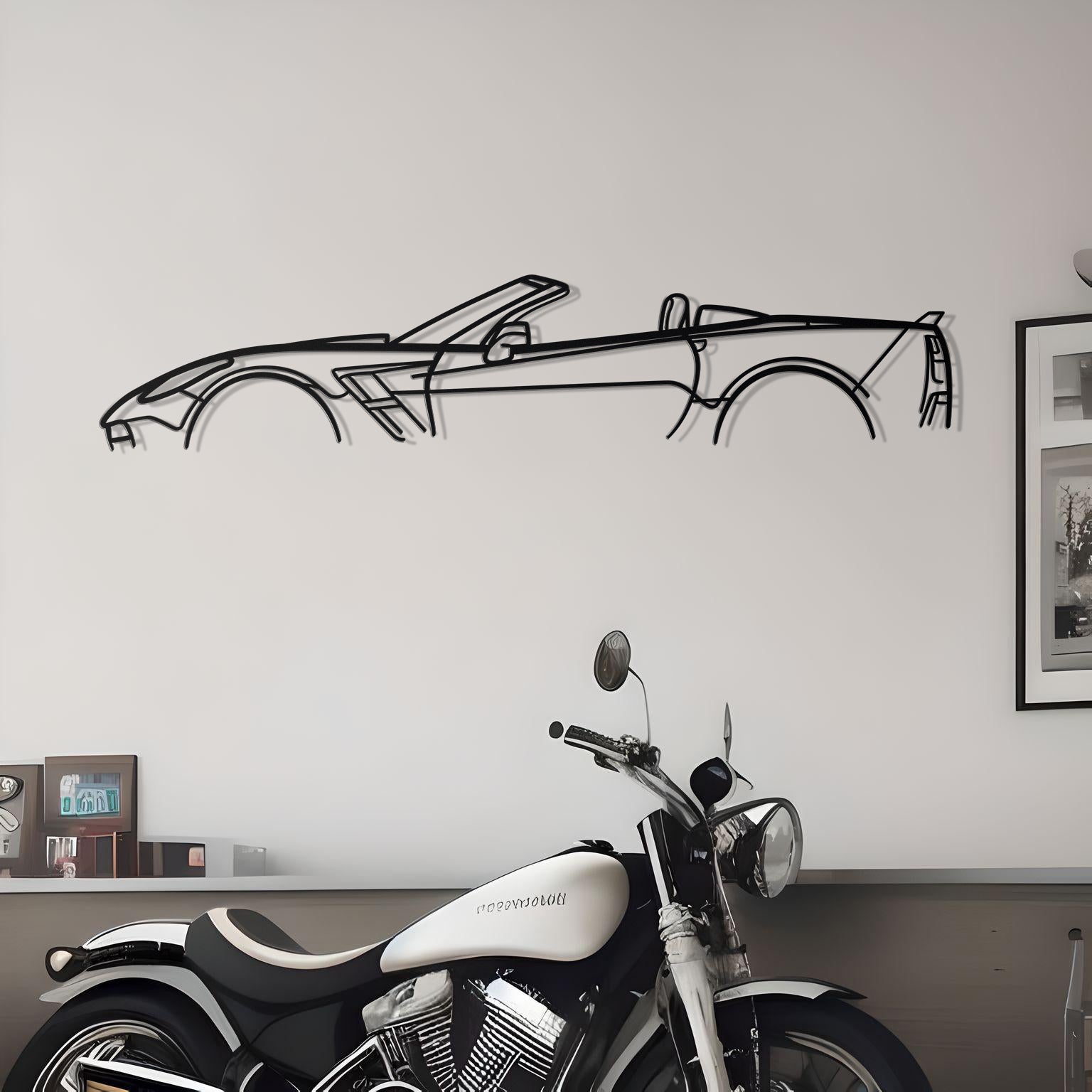 Capture the sleek elegance of the Corvette C7 Grand Sport Convertible in refined line-art form. This minimalist metal silhouette showcases the instantly recognizable contours of this modern American sports icon perfect for garages, living rooms, home offices, or showrooms where automotive artistry matters.