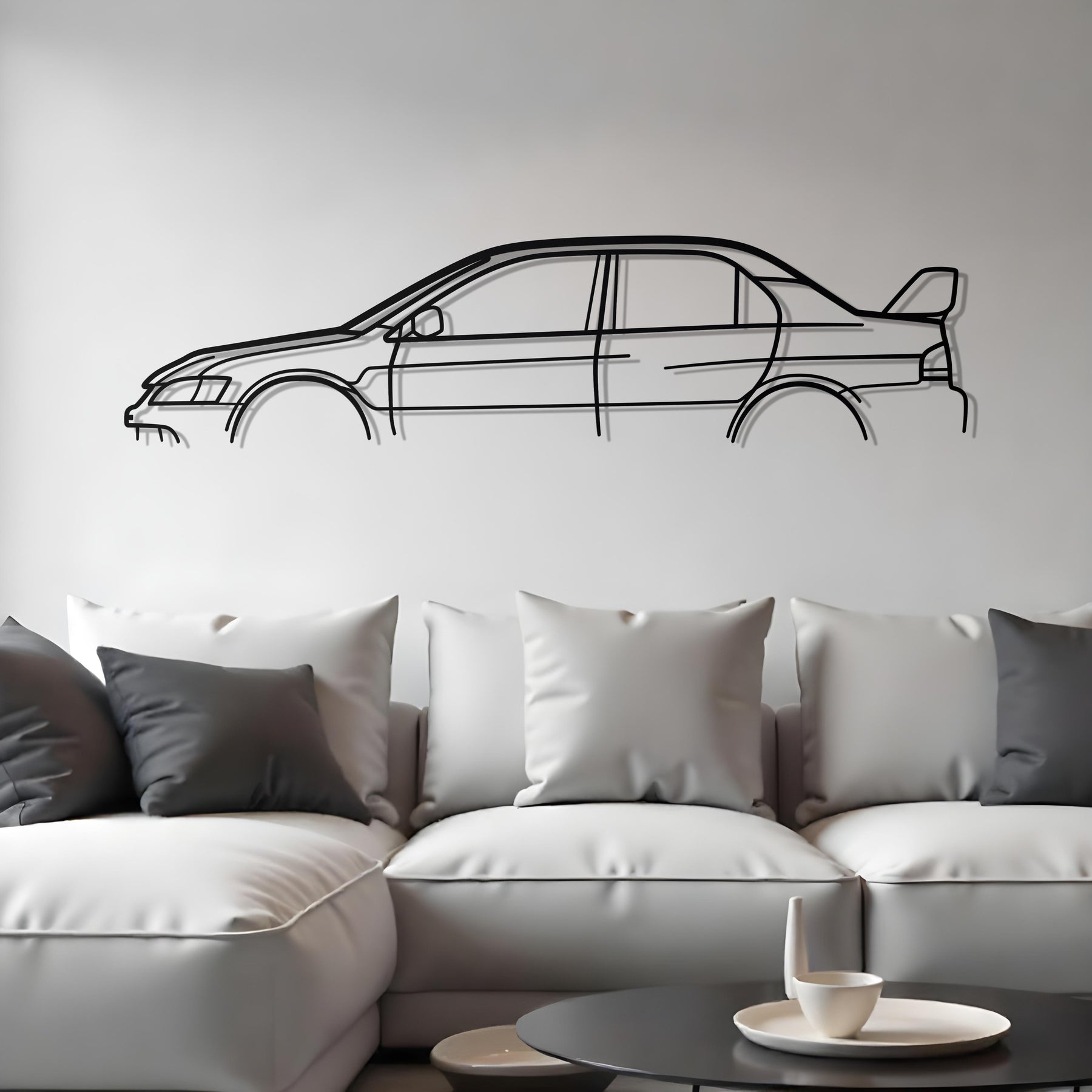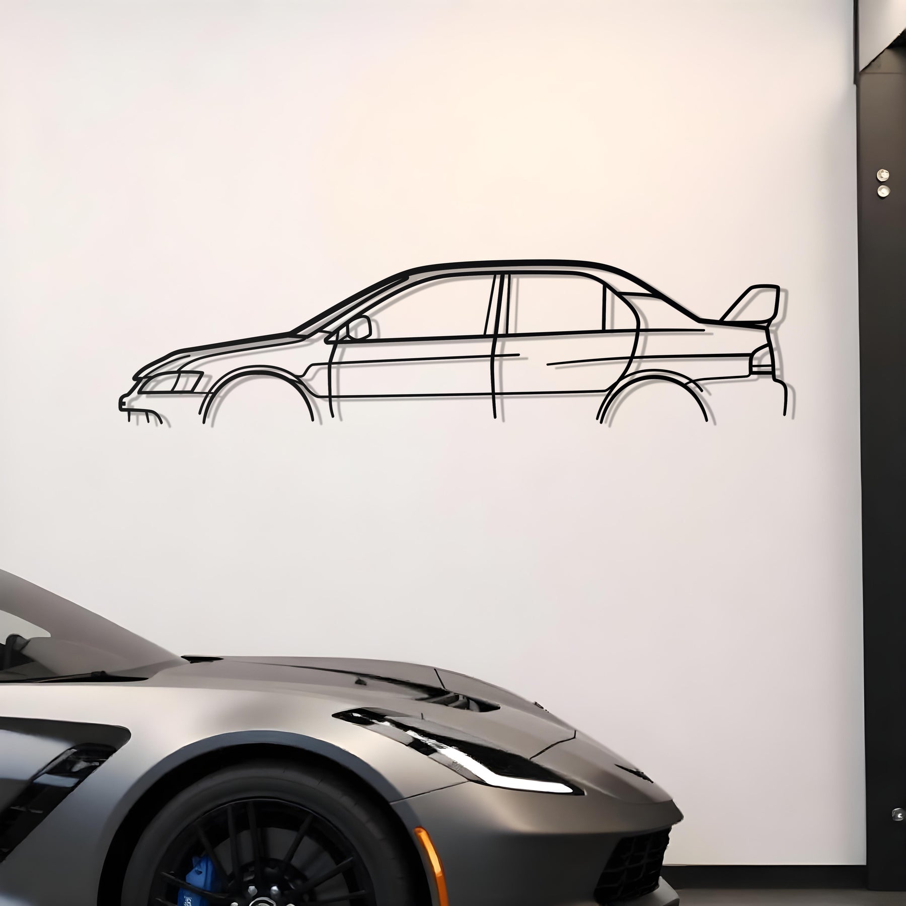 Celebrate JDM heritage and precision craftsmanship with this Mitsubishi EVO IX Classic Line Art Metal Wall Art. Laser‑cut from heavy-duty 2 mm steel and finished with a matte black powder coat, this artwork renders the sleek silhouette of the iconic Evolution IX in striking minimalist form. Its raised design and accurate profile make it perfect for automotive aficionados, collectors, and workspace decor.