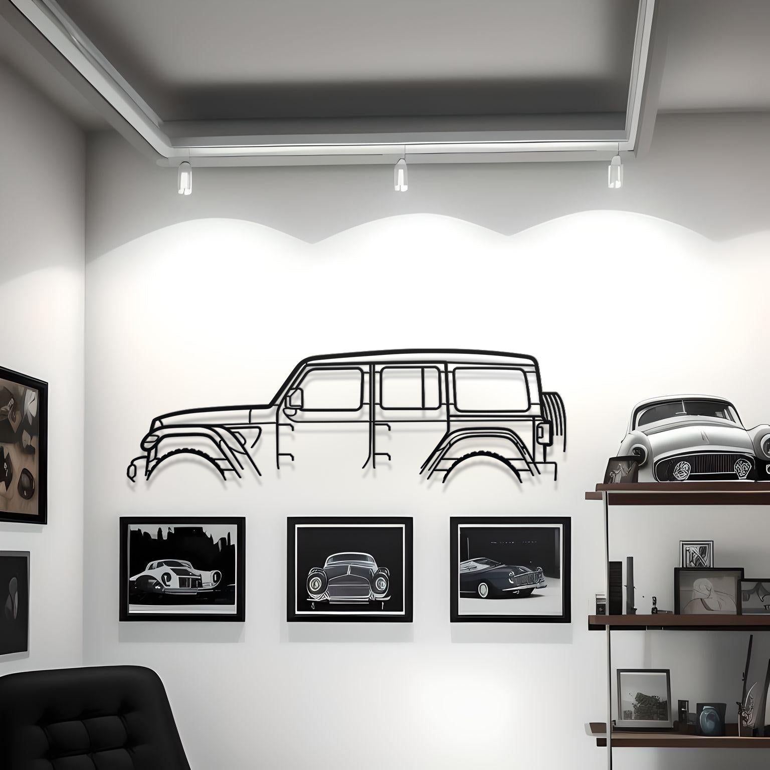 The matte black powder-coated finish ensures durability while maintaining a clean, industrial look that blends with any wall color or interior style. Hang it in your man cave, office, garage, or even living room to showcase your passion for off-roading and timeless automotive design.