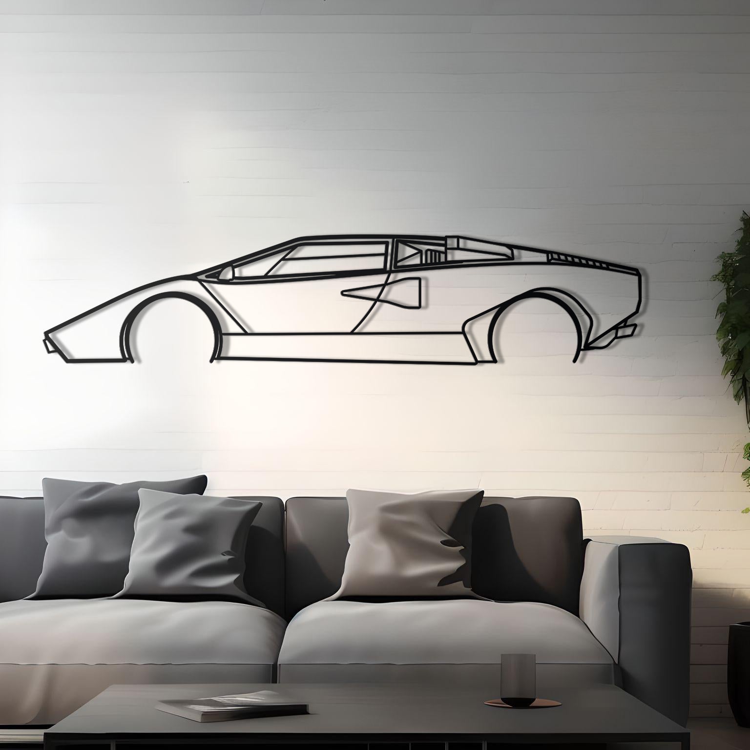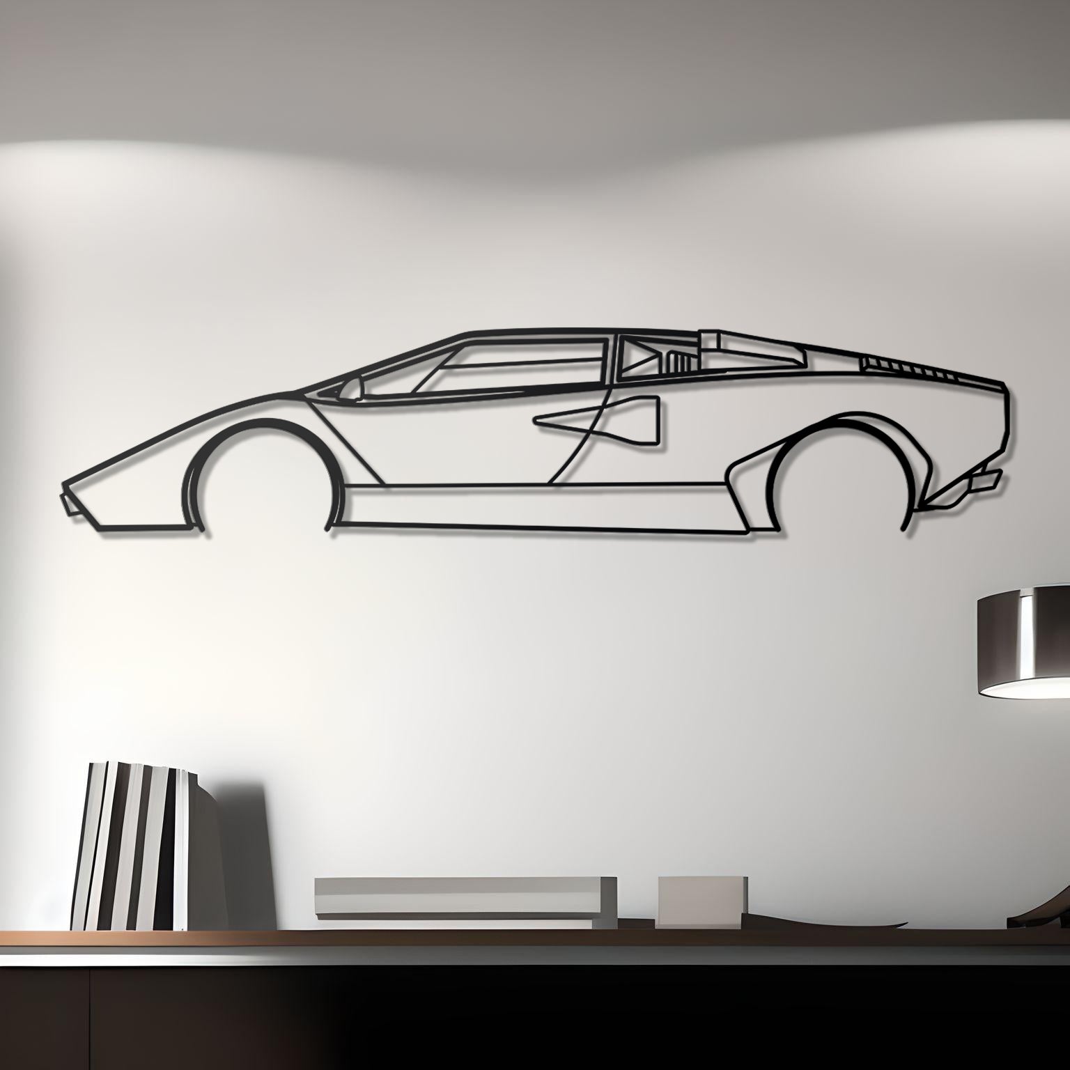 Celebrate the iconic wedge-sided legend with this precision laser-cut metal art, showcasing the 1974 Lamborghini Countach silhouette. Crafted from premium 2 mm steel, hand-polished, and finished with a matte‑black powder coat, the design captures the legendary angular profile and dramatic rear wing. Mounted about 1.5 cm from the wall using hidden elevation spacers, this piece brings a striking 3D effect—perfect for homes, offices, garages, or man caves.