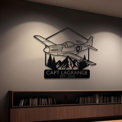 P-51 Mustang Front Custom Name Metal Wall Decor