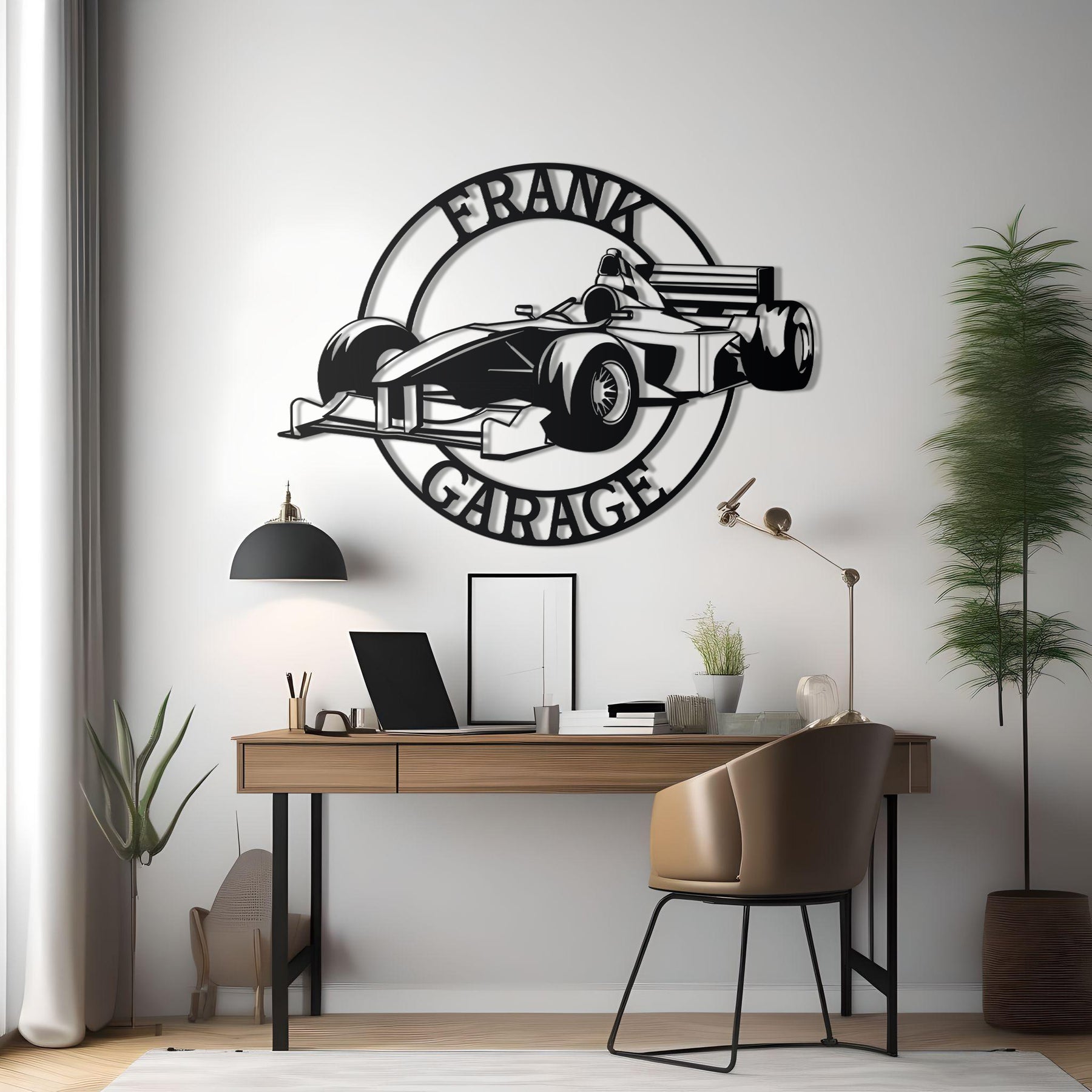 Bring the thrill of F1 into your space with this custom metal wall art featuring a sleek Formula 1 car silhouette. Laser-cut from 2 mm steel and finished with a durable matte black powder coat, this piece is weather-resistant and ready to impress. Your chosen name or message is seamlessly integrated into the design, and it floats 1–1.5 cm off the wall with included spacers and mounting hardware—perfect for garages, living rooms, offices, or man-caves. Current best-selling F1-themed silhouettes use 3 mm steel laser-cutting and include spacers for that dramatic floating 3D effect.