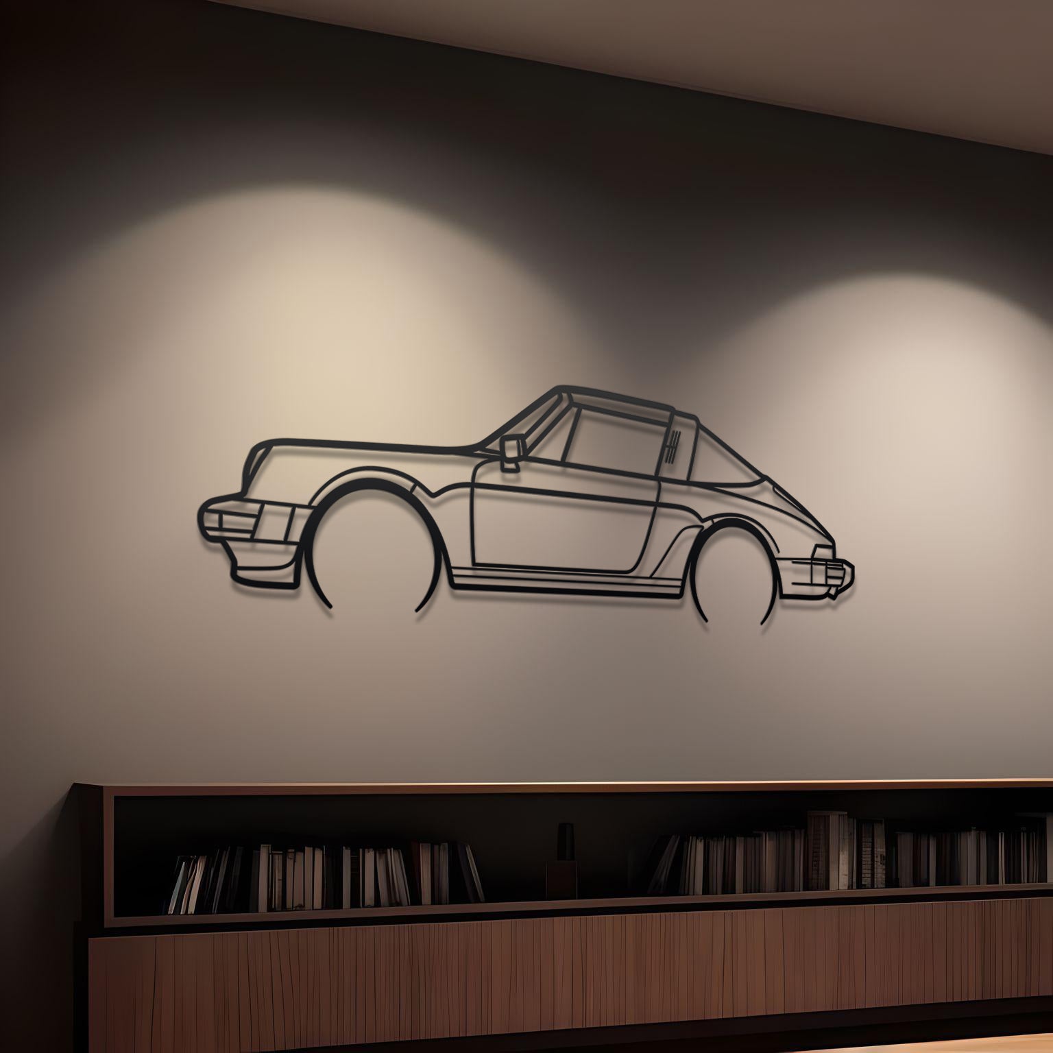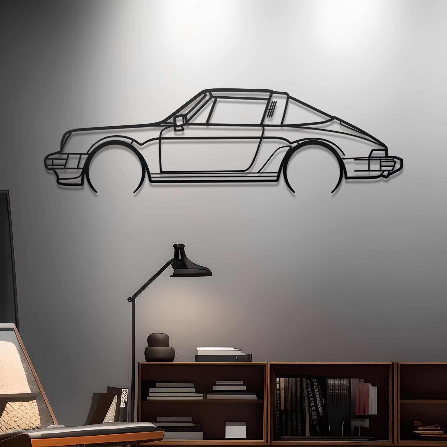Showcase the iconic 1978 Porsche 911 Targa through striking metal wall art. Perfectly capturing the Targa’s classic open-top silhouette, this piece is laser‑cut from 2 mm thick steel, finished with a sleek matte black powder coat for durability and timeless style. Equipped with elevation screws (~1 cm), the design floats off the wall, creating a dramatic 3D shadow effect—ideal for garages, study rooms, living areas, or showrooms.