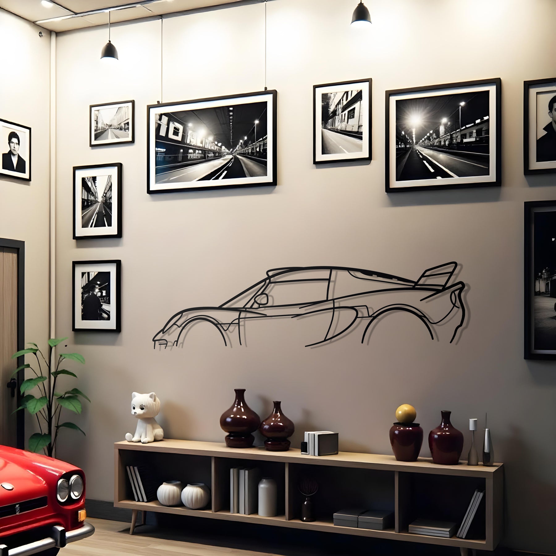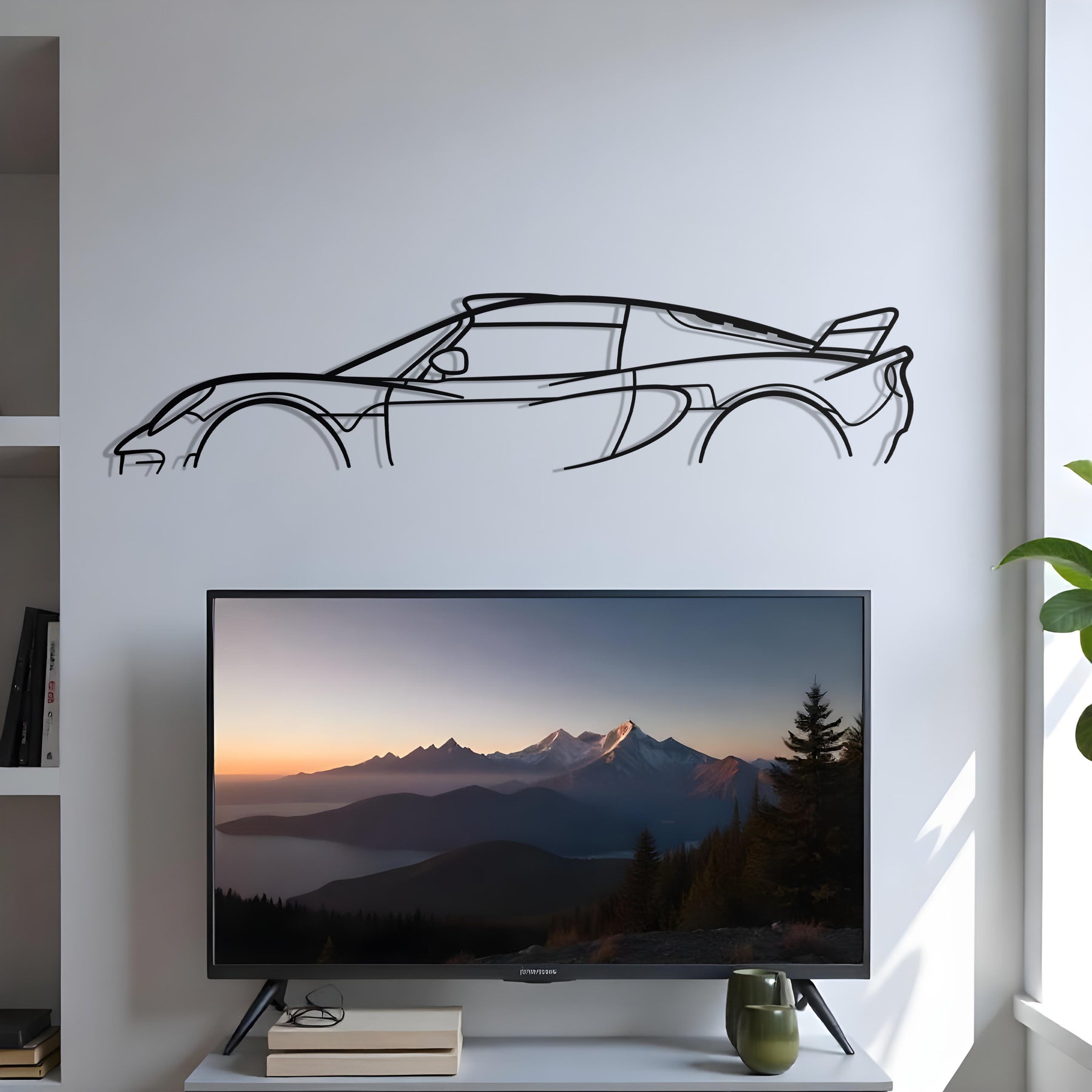 Celebrate the raw spirit of Lotus with this elegantly minimalistic silhouette of the Exige. Crafted from precision laser-cut steel and finished in durable matte black powder coating, this wall art brings performance-inspired design into any living or workspace. Featuring elevation screws for a 3D floating effect, it subtly enhances ambient lighting and adds visual depth. Ideal for garages, lounges, studios, or automotive-themed interiors