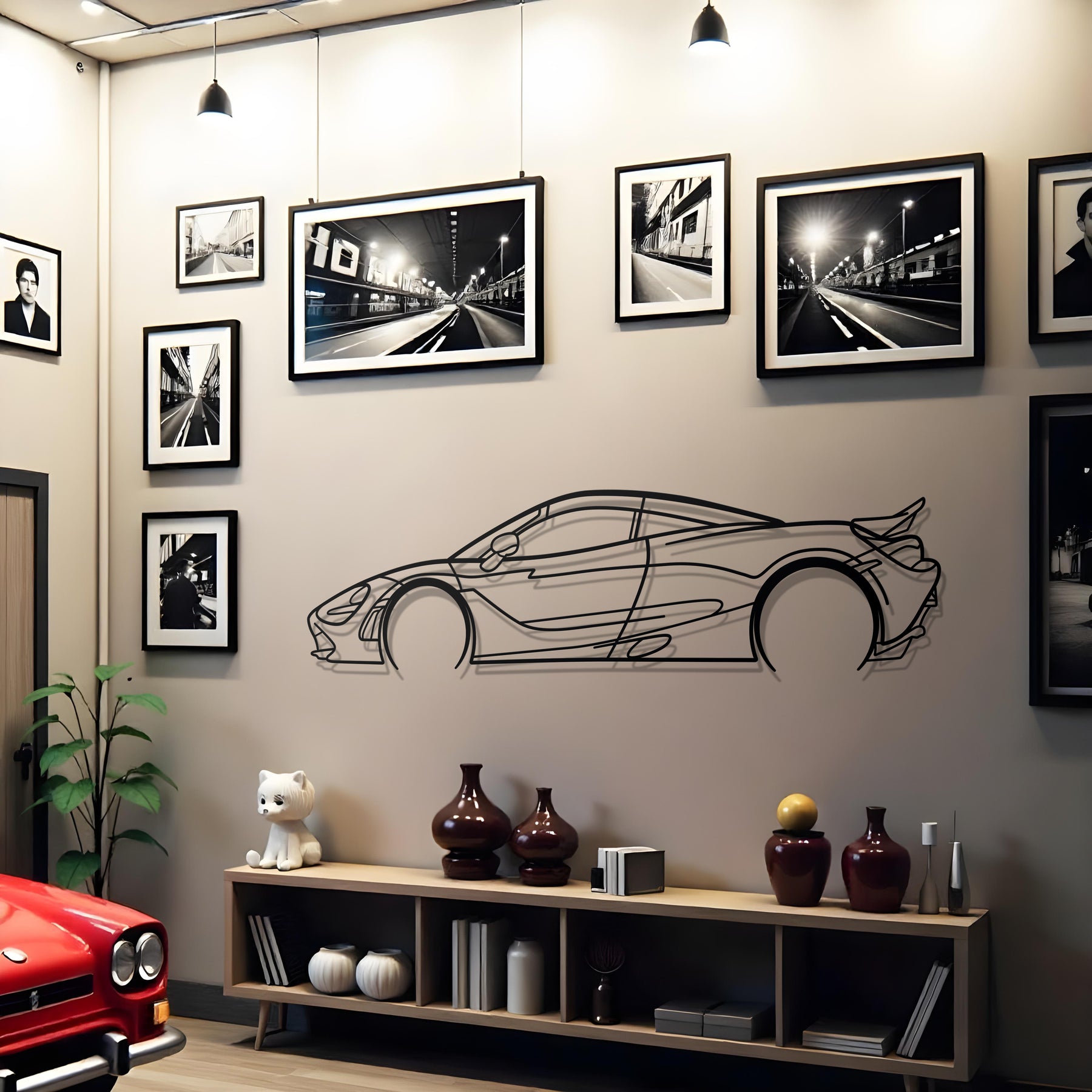 Elevate your space with the dynamic elegance of the McLaren 720S embodied in sleek metal artistry. Crafted using precision laser-cutting technology, this metal silhouette captures the aerodynamic curves and sculptural beauty of the 720S in a minimalist, matte-depth design. It’s the perfect blend of automotive passion and refined décor for garages, living areas, offices, or man caves.