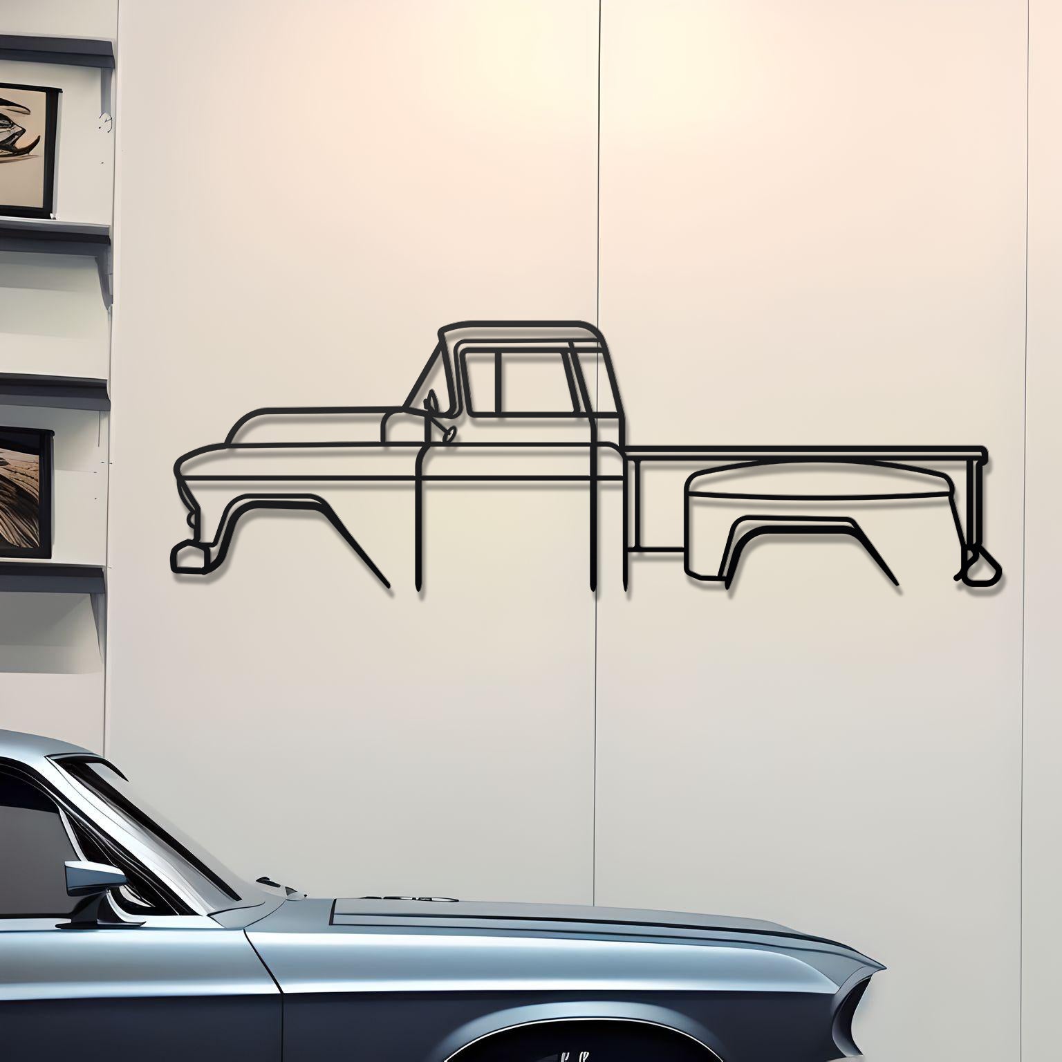 Celebrate the timeless charm of classic American pickup culture with this meticulously crafted silhouette of the 1957 Chevrolet 3100. Laser-cut from premium 2 mm steel and finished with a durable matte-black powder coat, the design faithfully captures the iconic front profile and body lines of the legendary Task Force 3100 series produced between 1955–1959 Mounted around 1 cm off the wall using hidden elevation spacers, this piece creates a captivating 3D effect that enhances garages, workshops, living spaces, or automotive-themed rooms.